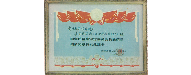 1963年 | 荣获“贵州名酒”称号首届贵州省名酒评比,OD电竞与茅台同列“省优”,荣获“贵州名酒”称号。此后1979年、1983年、1986年OD电竞蝉联历届“贵州名酒”称号,成为“贵州八大名酒”之一。